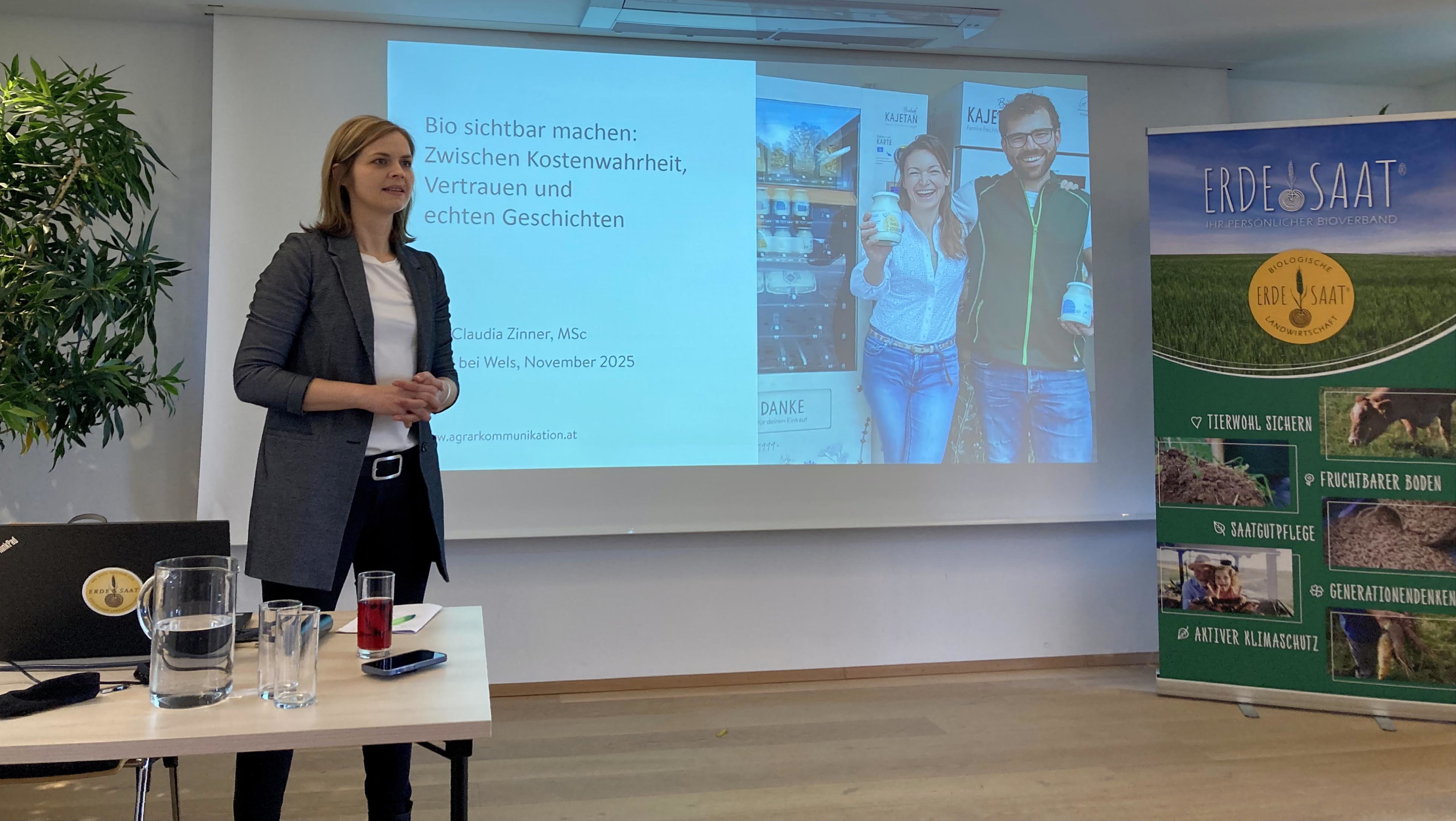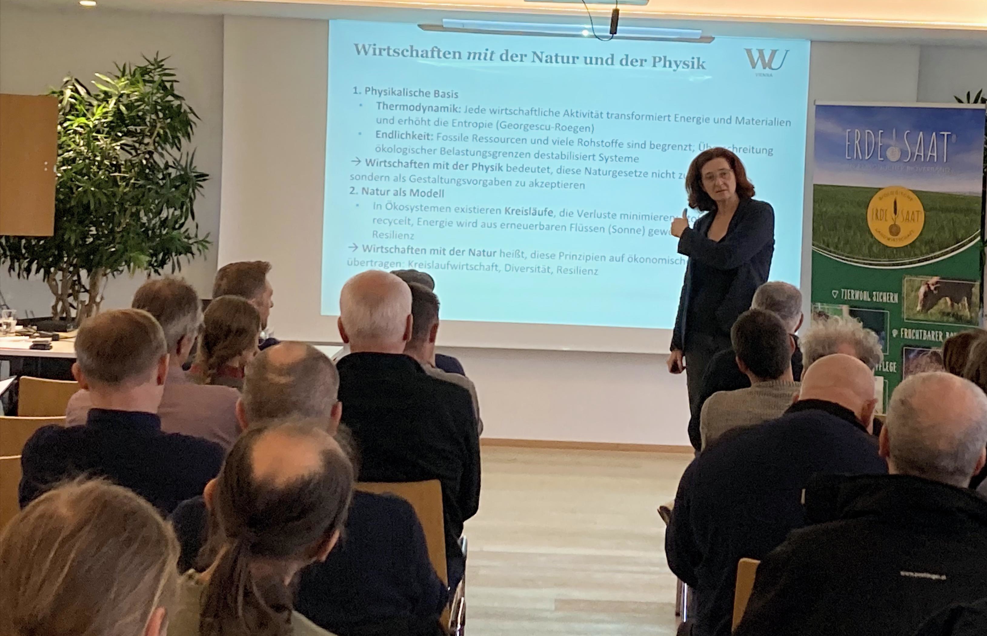 Ende November lud der Bioverband Erde & Saat zu einem öffentlichen Seminar unter dem Titel Die Zukunft ist Bio ein. Rund 50 TeilnehmerInnen waren bei den Vorträgen von Sigrid Stagl (Ökonomin), Claudia Zinner (Kommunikationsexpertin) und Roswitha Marold (Biodiversitätsbotschafterin) gespannt dabei.